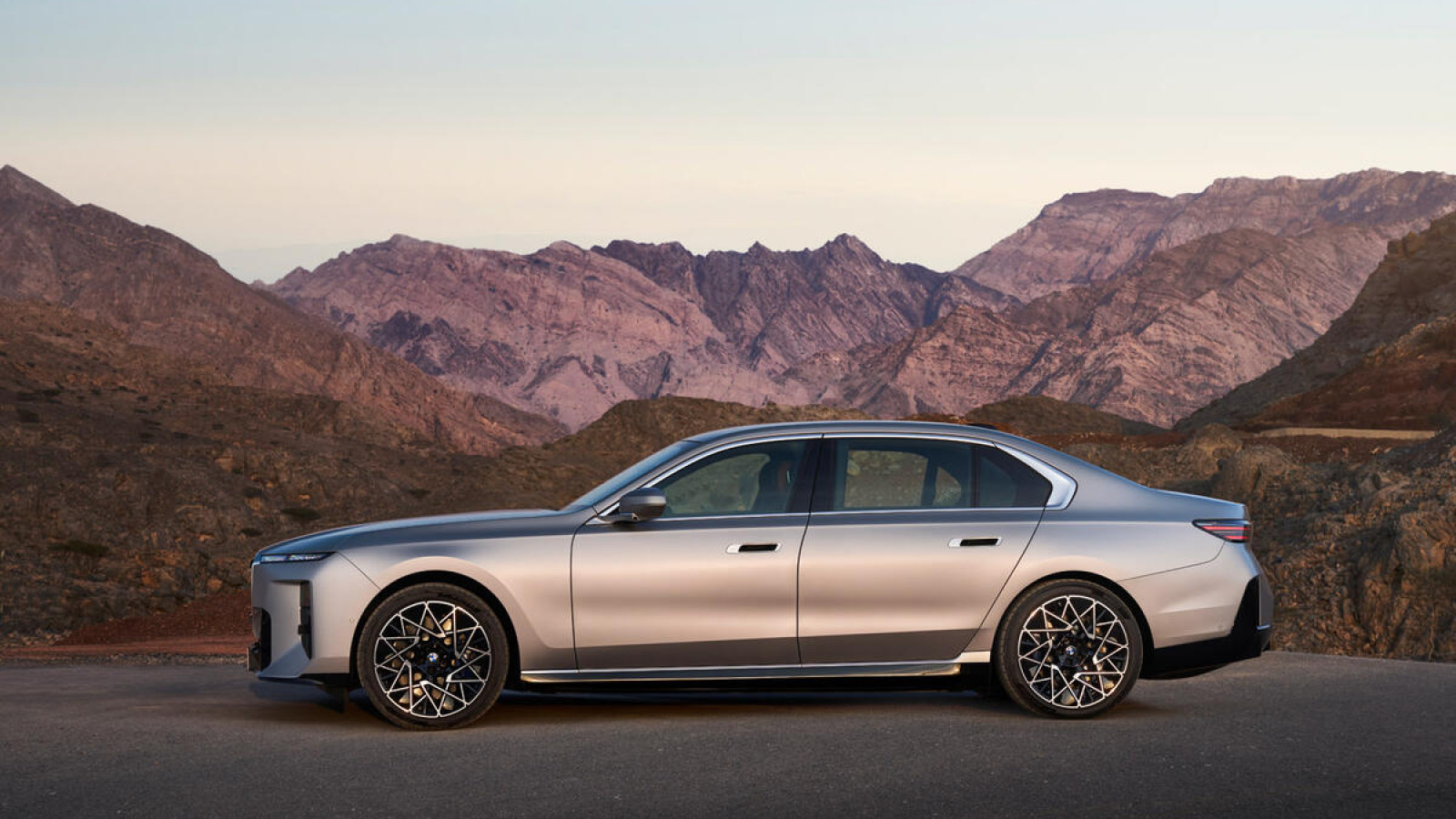 At the rear, the 7 Series looks nearly identical to the i3, with new lights that are designed to emphasise its width. Alloy wheels are 22in as standard. “We’re merging Neue Klasse with luxury. This car is all about presence,” said Max Missoni, BMW’s lead designer for luxury models. “The grille stands proud, and the eyes are focused.”
