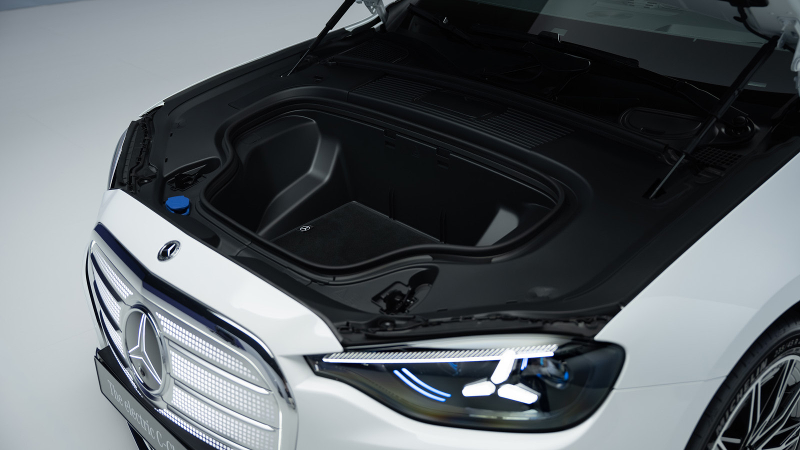 Thanks to its flexible platform, the electric C-Class is slightly larger than its internal-combustion counterpart. A higher roofline means more headroom in both rows – 22mm extra in the front and 11mm in the rear – despite the underfloor battery.