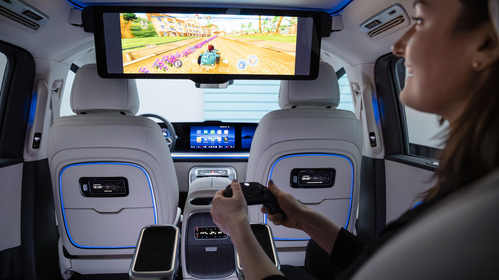 In the front, drivers can make use of the Mercedes superscreen system, which spans the entire length of the dashboard, while those in the back benefit from a huge 31.3-inch television with 8K resolution. There’s also an AI voice assistant and over-the-air software updates.