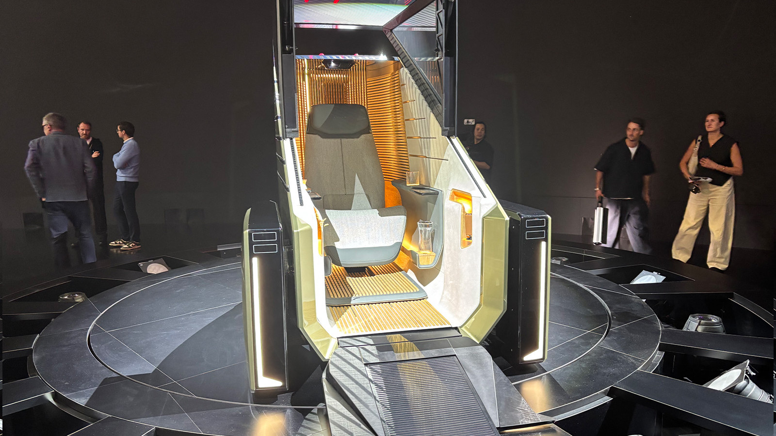 Es verfügt über einen verstellbaren Ledersitz im Sesselstil, einen riesigen vertikalen Display- und Steuerungsbildschirm (wo sich normalerweise das Lenkrad befindet), Böden und Wände aus Bambus sowie ein maßgeschneidertes Glasgeschirrset für Getränke unterwegs.