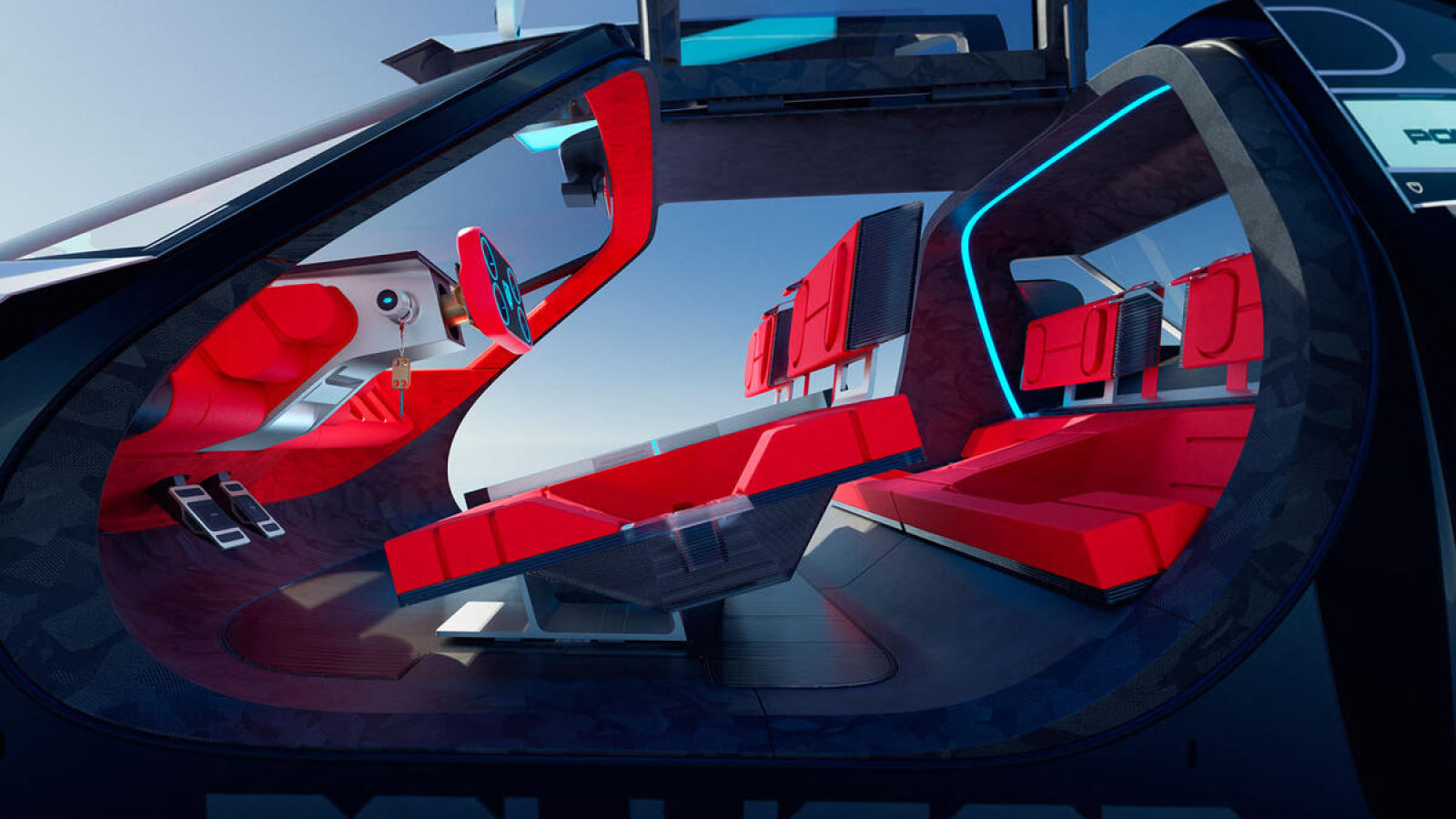 An anderer Stelle im Innenraum wurden die traditionellen Sitze durch Rennsitze ersetzt. Diese können innerhalb weniger Minuten ausgetauscht werden, sodass Besitzer theoretisch das Design oder die Farben ändern können.