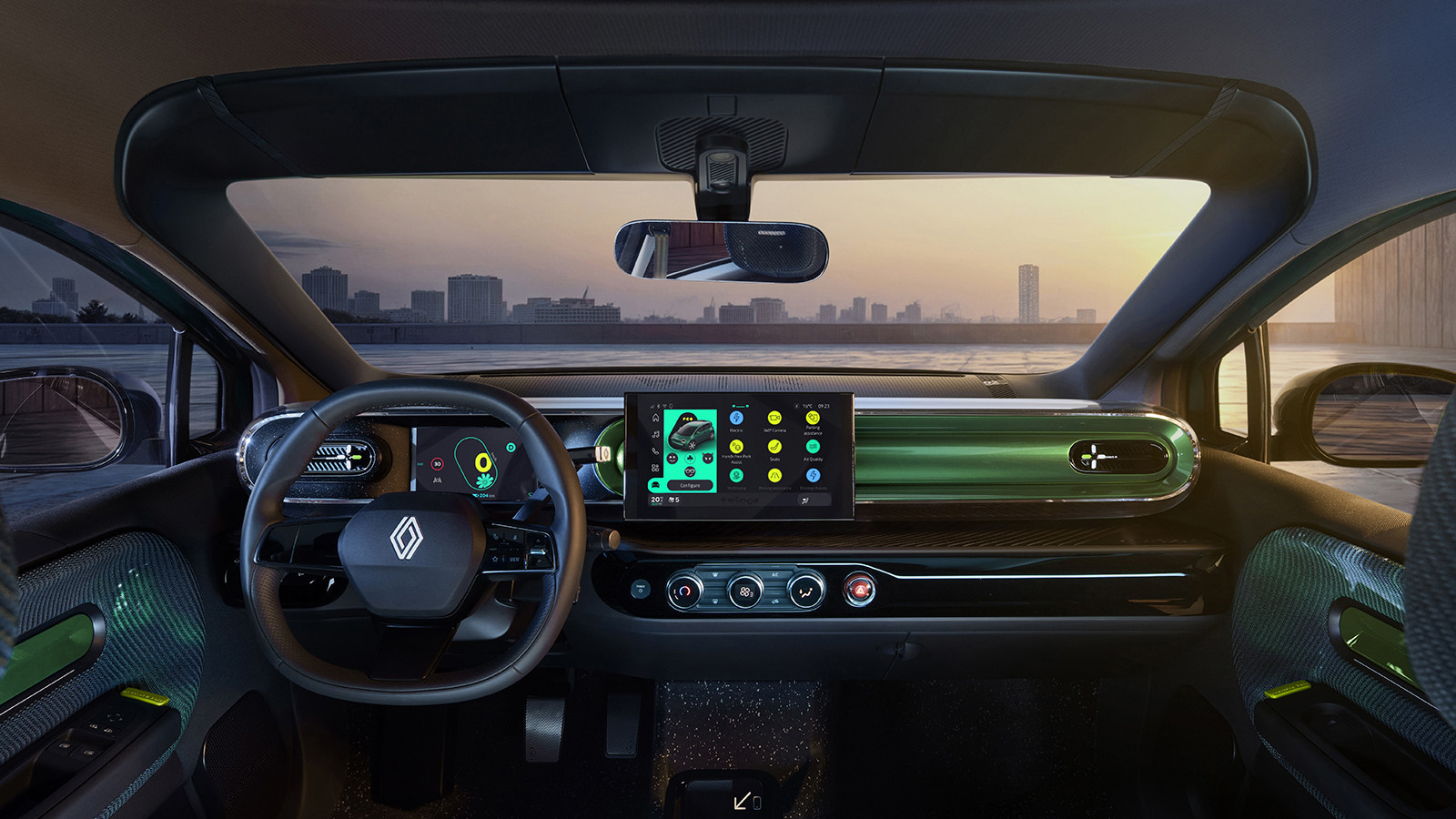 Der frisch enthüllte Innenraum ist eindeutig mit dem der größeren Elektroautos von Renault verwandt - dominiert von einem 7,0-Zoll-Digitalanzeigeinstrument und einem 10,1-Zoll-Touchscreen in der Mitte -, macht aber auch deutliche Anspielungen auf den Innenraum des ursprünglichen Twingo.