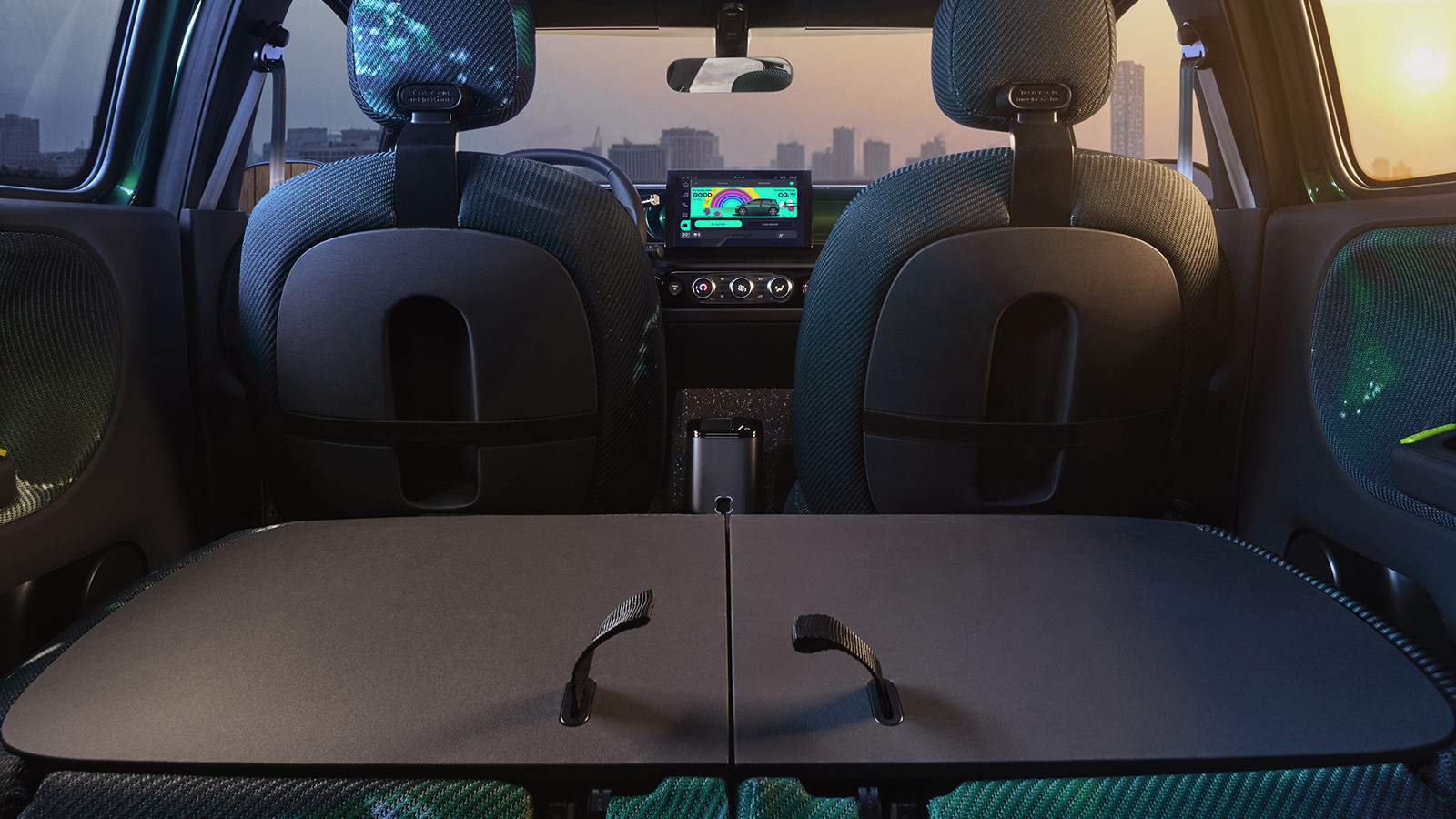 Außerdem gibt es eine geteilt umklappbare Rückbank, um den Kofferraum zu vergrößern, sowie magnetische Telefonhalterungen an der Rückseite der vorderen Kopfstützen und einen elastischen Flaschenhalter.