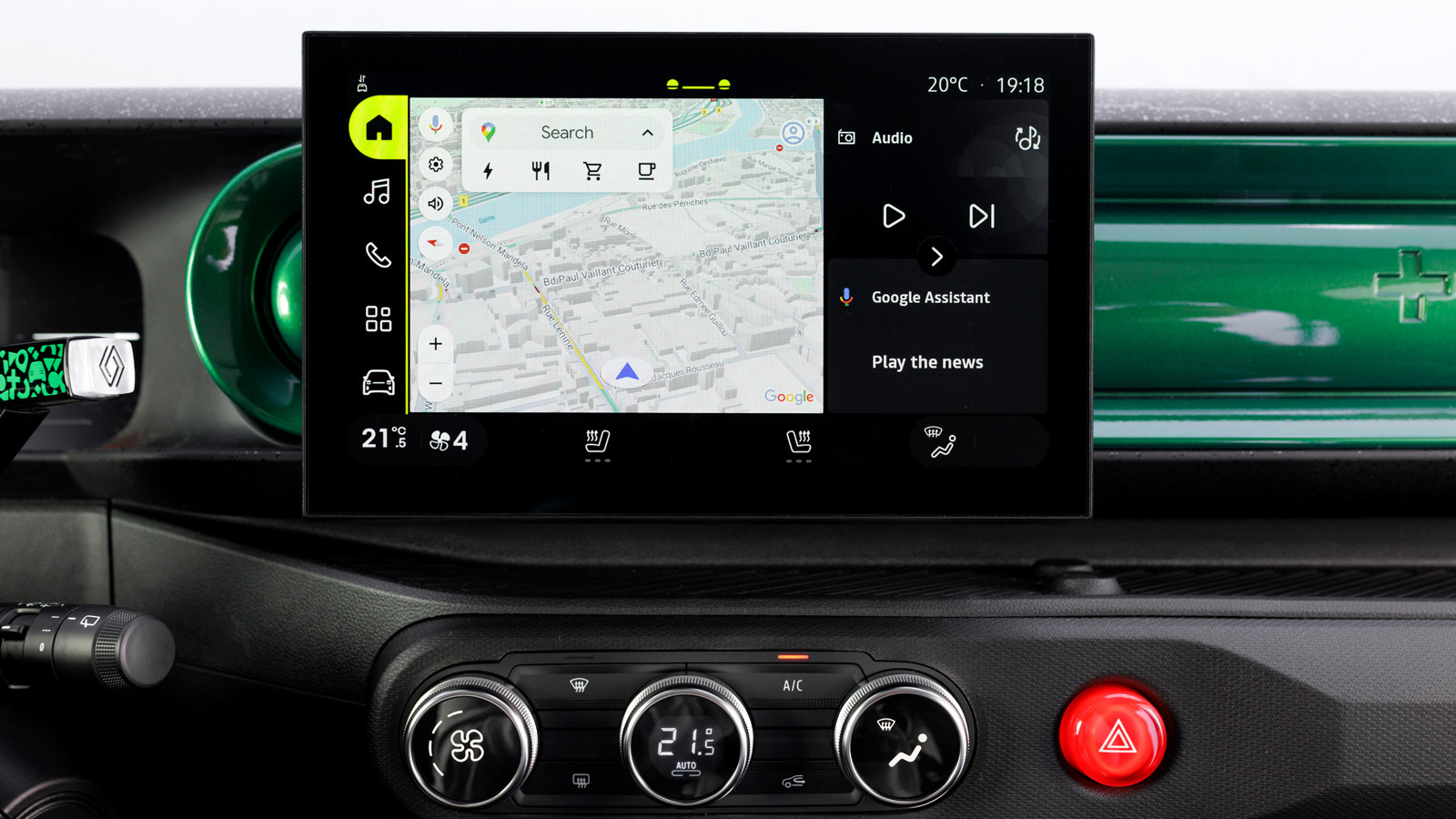 Wichtig für einige Fahrer ist, dass der Twingo über eine Google Maps-Integration verfügt, die die Standorte von Ladestationen, Änderungen der Fahrzeugdaten (Verbrauch, Reichweite usw.) und die Außentemperatur anzeigt.