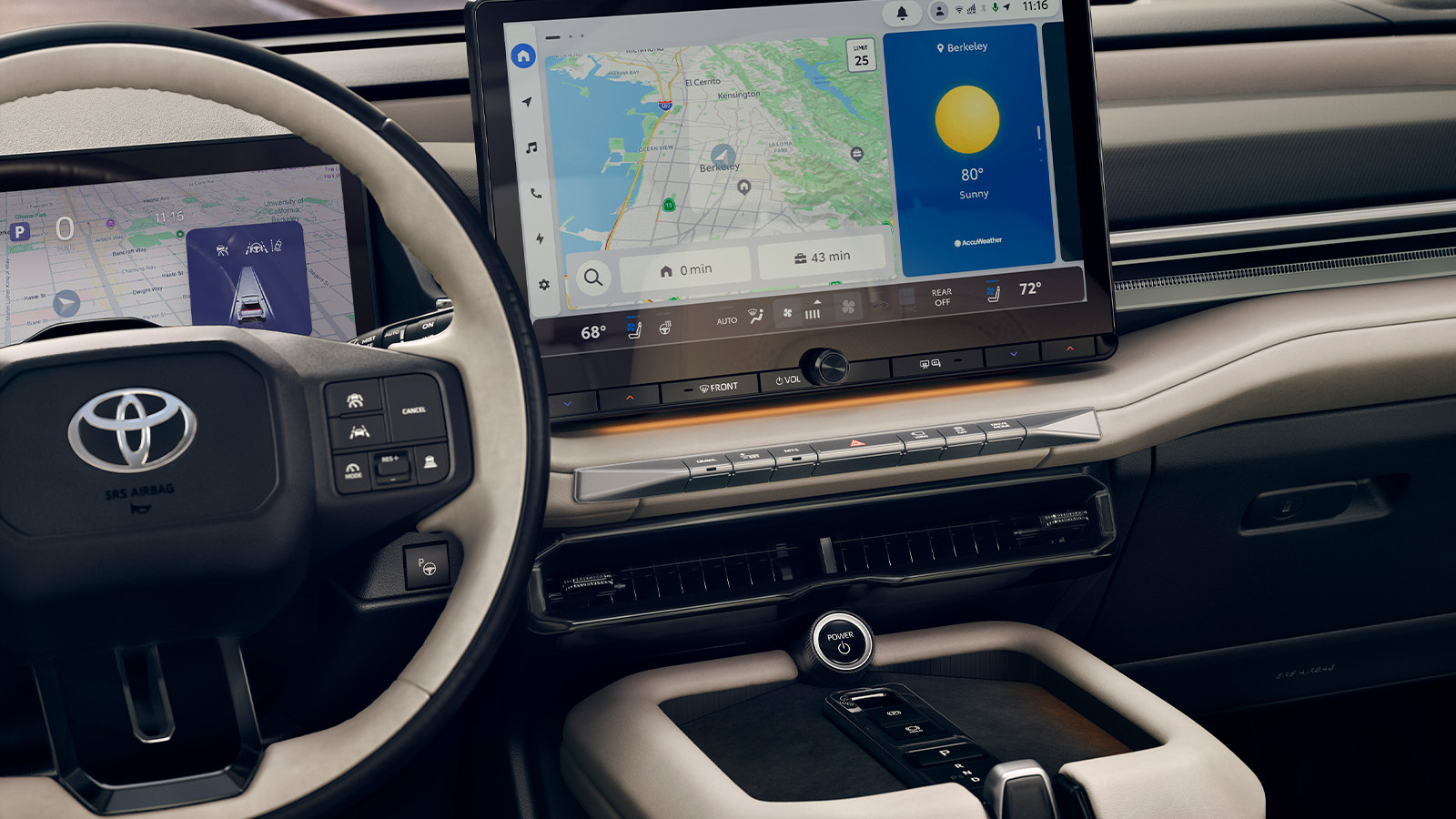 Auch der Innenraum wurde modernisiert und verfügt nun über einen 14-Zoll-Touchscreen, ein 12,3-Zoll-Digitaldisplay hinter dem Lenkrad und eine Ambientebeleuchtung. Laut Toyota verfügt der Highlander außerdem über das größte Panoramadach in der Modellpalette des Unternehmens.