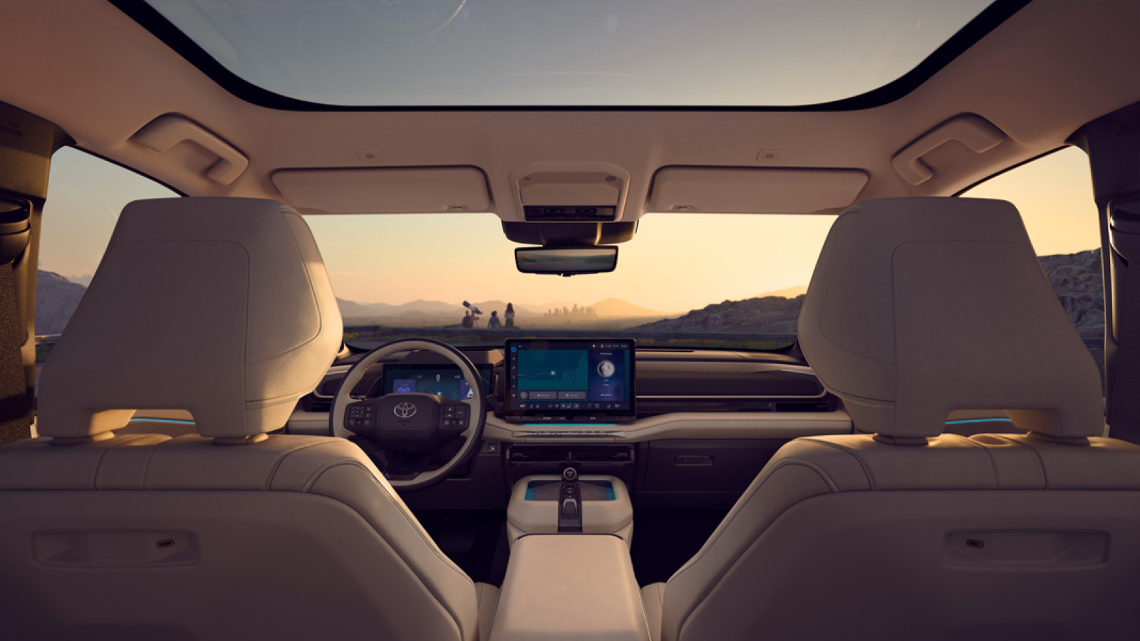 Der elektrische Highlander ist das erste elektrische Siebensitzer-Modell des Unternehmens. Toyota wirbt mit einem geräumigen Innenraum mit drei Sitzreihen, der mit Soft-Touch-Materialien ausgestattet ist und serienmäßig über beheizbare Vordersitze verfügt. Bei umgeklappter dritter Sitzreihe stehen 1291 Liter Kofferraumvolumen zur Verfügung.