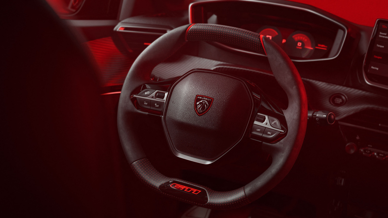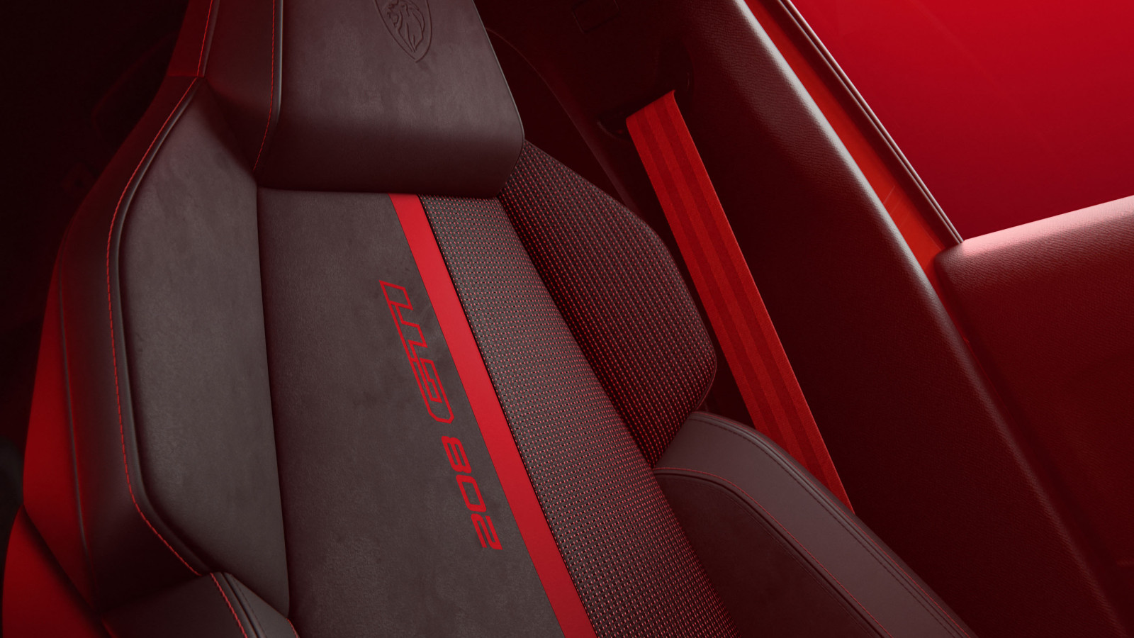Im Innenraum des e-208 GTi setzen sich die Anspielungen auf den 205 fort: Die Schalensitze sind zwischen roten und schwarzen Elementen aufgeteilt, und auch die Fußmatten sind in Rot gehalten. Ansonsten ist der Innenraum identisch mit dem des e-208, allerdings sind Sitze und Lenkrad mit Alcantara bezogen.