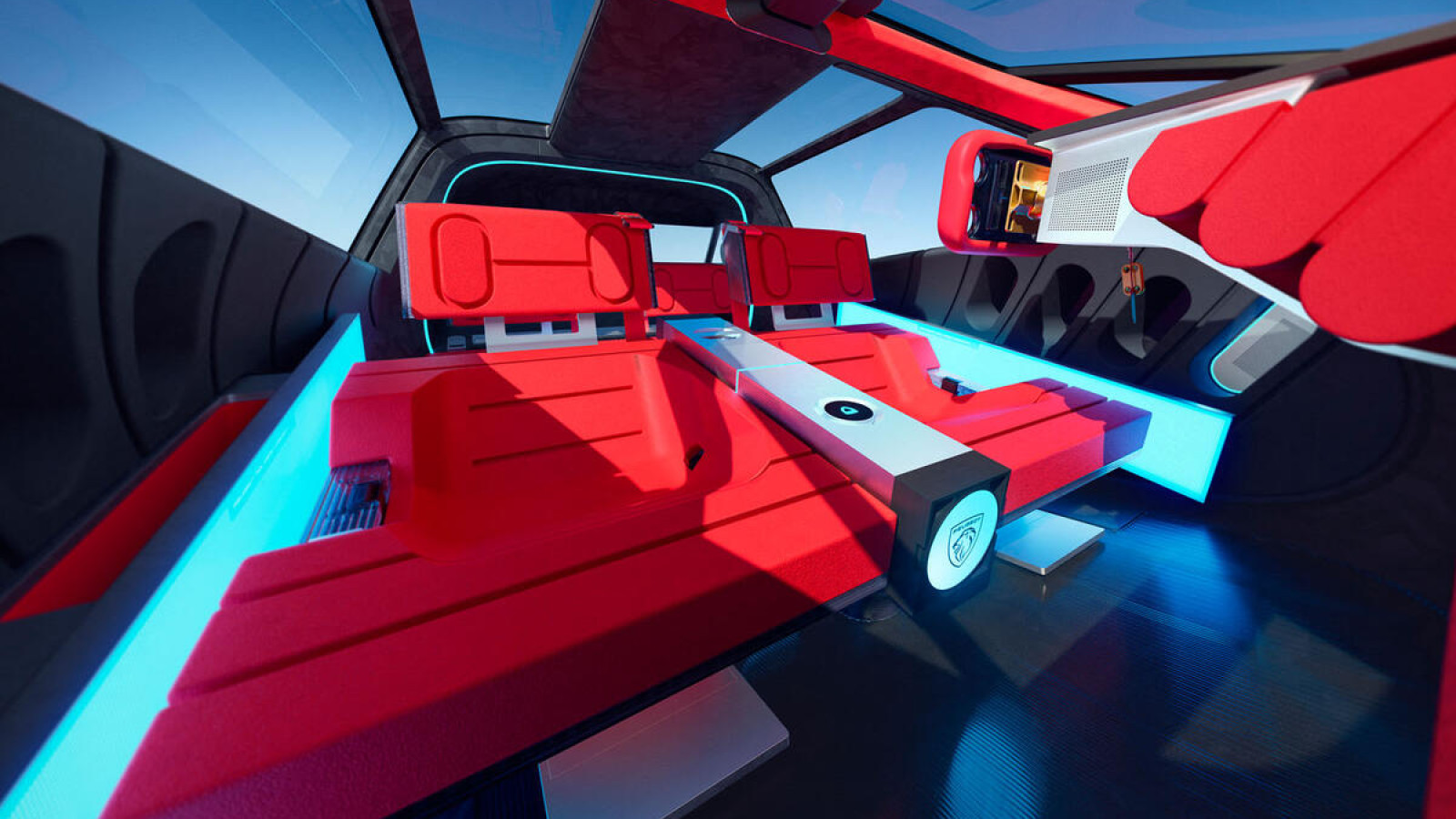 An anderer Stelle im Innenraum wurden die traditionellen Sitze durch Rennsitze ersetzt. Diese können innerhalb weniger Minuten ausgetauscht werden, sodass Besitzer theoretisch das Design oder die Farben ändern können.