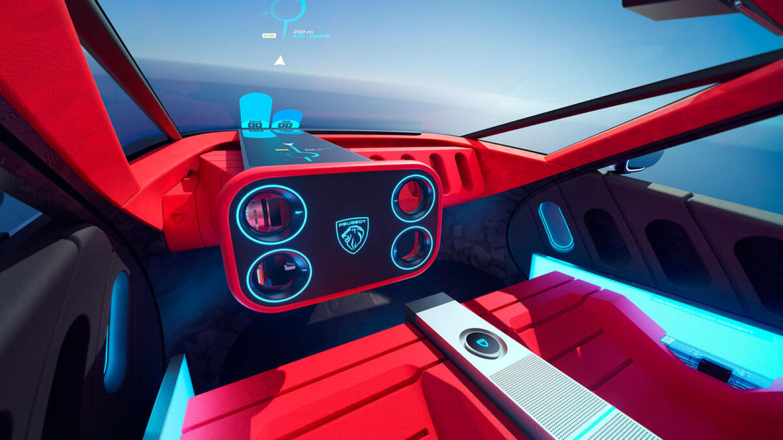 Peugeot hat auch alle physischen Anzeigen entfernt und zeigt stattdessen alle wichtigen Fahrzeuginformationen auf der Windschutzscheibe an. Insgesamt misst die Anzeigefläche 31 Zoll.
