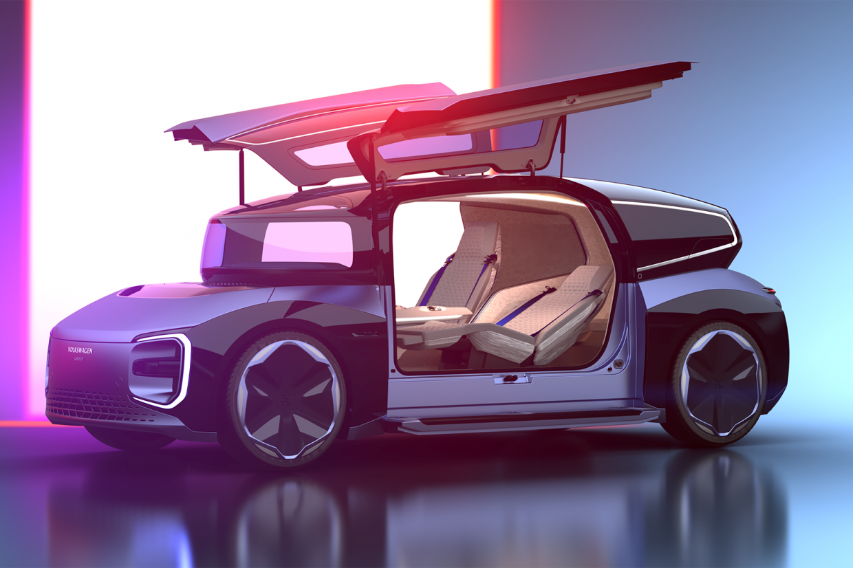 While Volkswagen hasn’t given full technical details of the machine – it is, after all, a design study concept – it is fitted with active suspension and electric ABS braking, along with an Artificial Intelligence system that allows for platooning, which means it can run in convoy with a fleet of other Gen.Travel machines.
