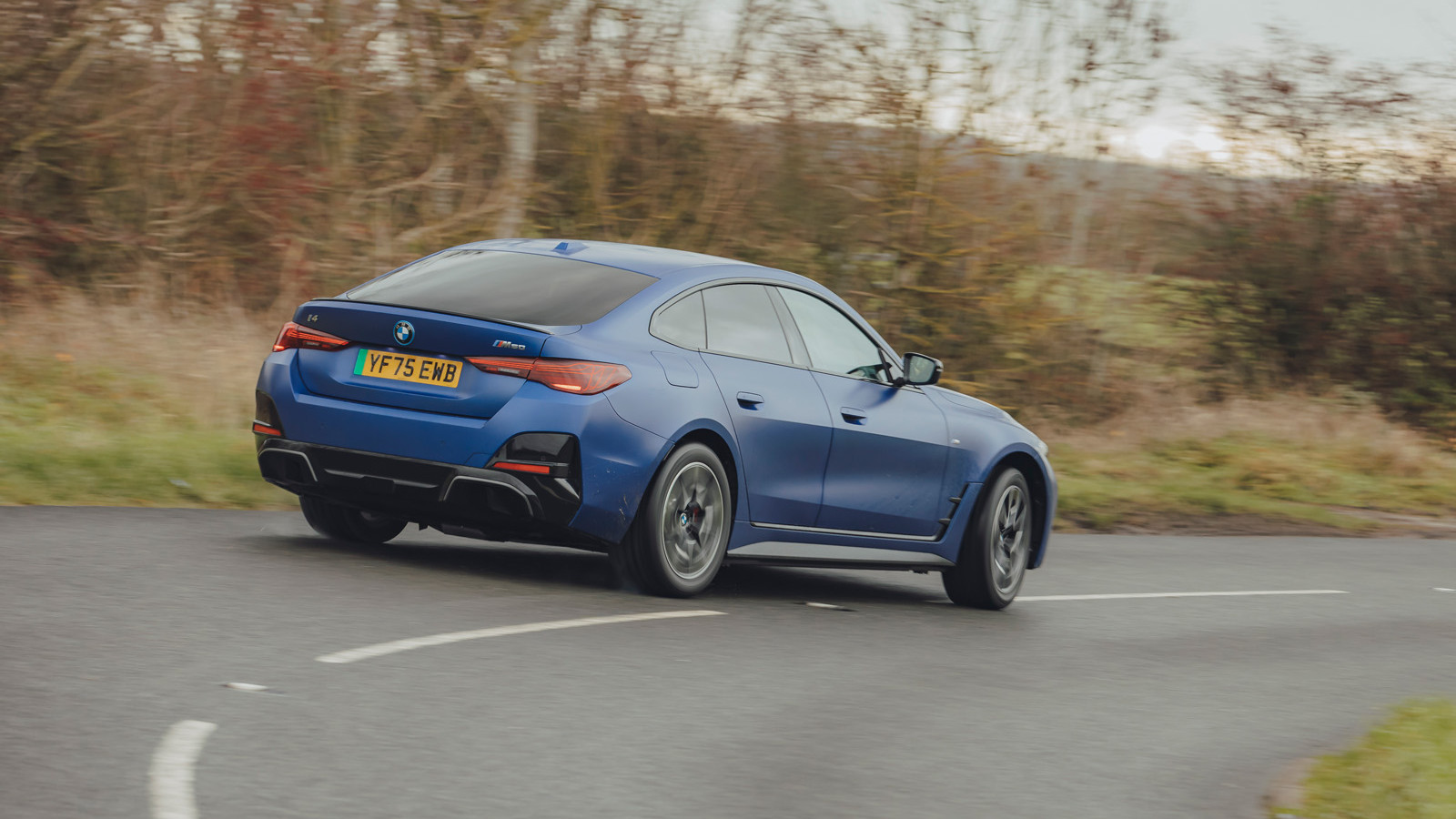 The i4 handles much as you’d expect from a BMW. Body control is taut on a country road, and there’s a good amount of isolation against any jitteriness or restless fidgeting. Lumps and bumps in the road are handled with ease. The steering is direct and responsive, and there’s real fun to be had from the i4’s agile chassis.
