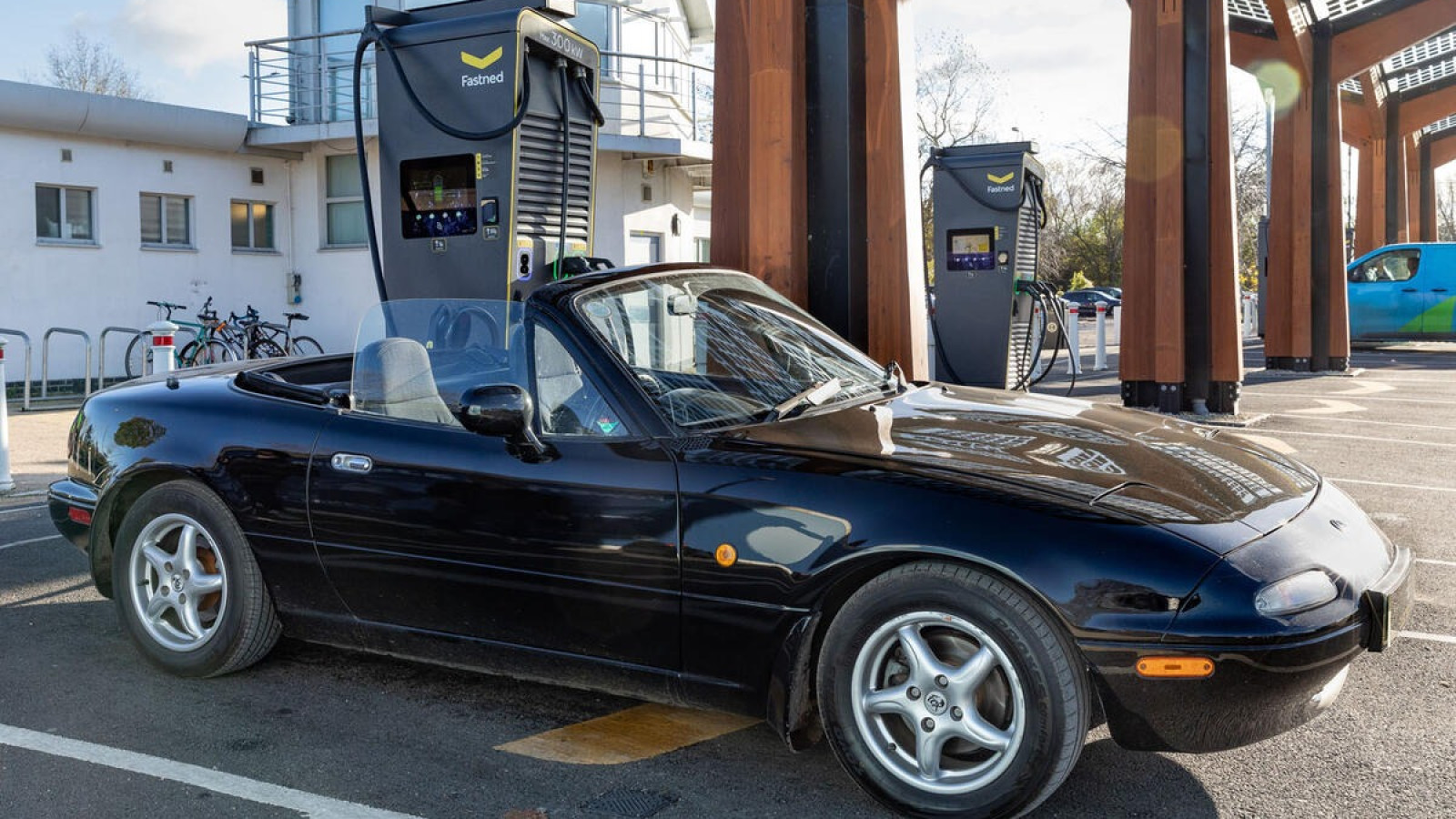 Designed to be completely reversible, it swaps the NA-generation roadster's four-cylinder petrol powerplant for a single electric motor.