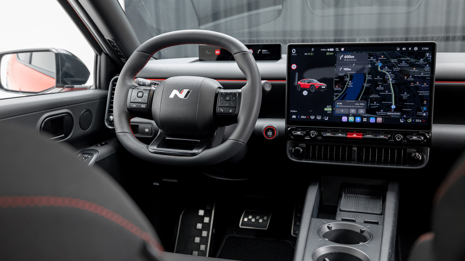 Cela a donné naissance à un nouveau tableau de bord numérique fin, placé nettement plus haut que sur les Hyundai existantes ; il est associé à un volant plus petit, ce qui donne une configuration similaire à celle de l'i-Cockpit de Peugeot.