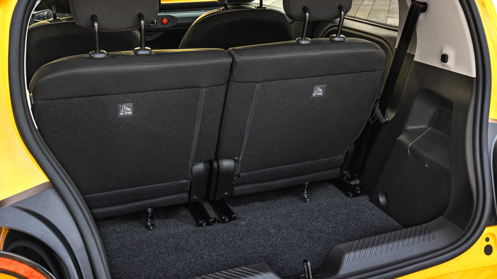 Om het feit tegen te gaan dat korte auto's geen grote achterruimte en grote kofferbakken kunnen hebben, heeft de Twingo slechts twee stoelen achterin, die beide onafhankelijk van elkaar ongeveer 17 cm kunnen schuiven, zodat je knieruimte kunt inruilen voor kofferbakruimte. Ze zijn ook afzonderlijk neerklapbaar.