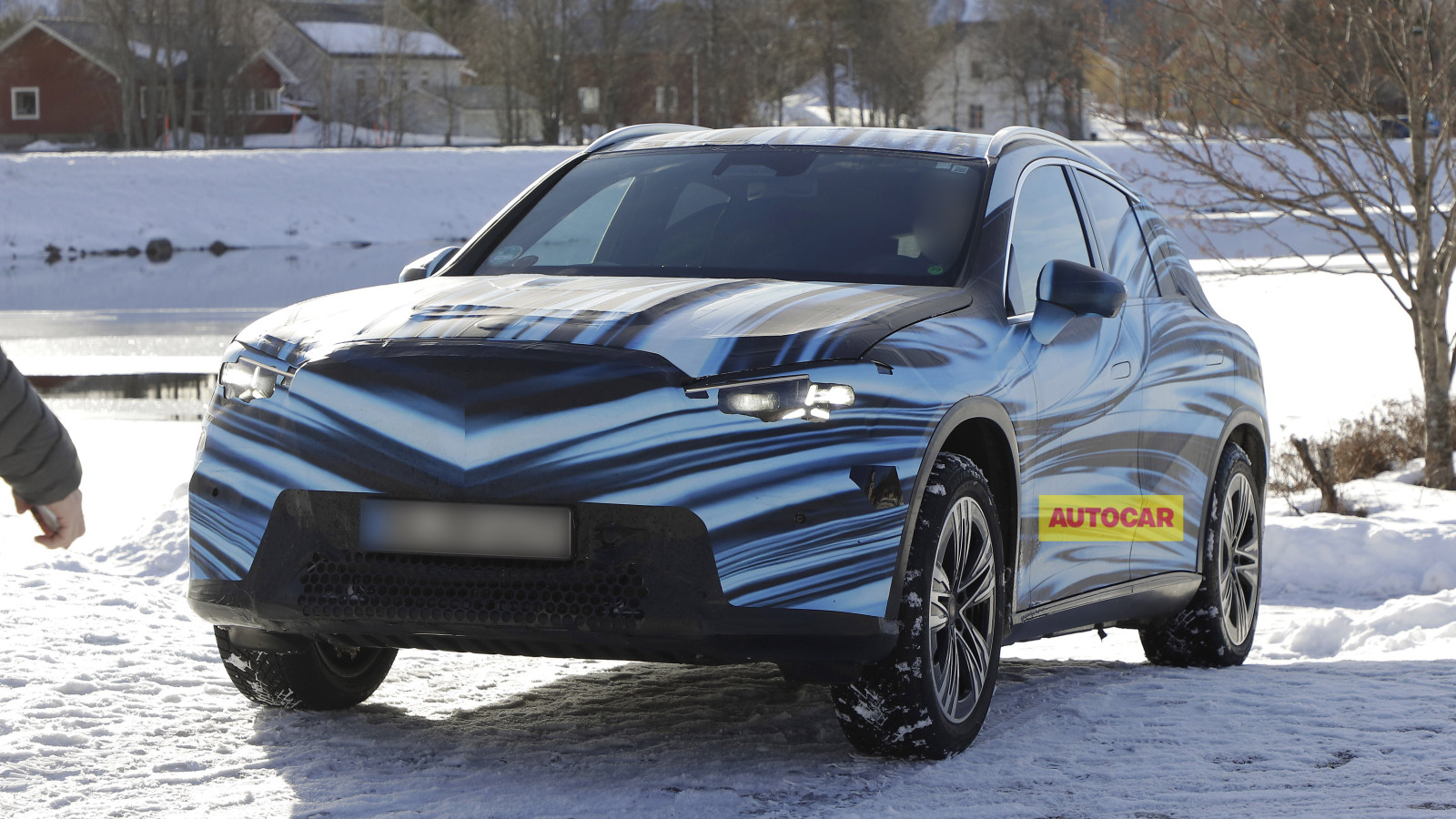 Naast de afgewerkte koplampen, die nog steeds de laatste lampafbeelding in de vorm van een ster als dagrijverlichting missen, zijn nu ook de grille en de rechte lijn van de motorkap herkenbaar.