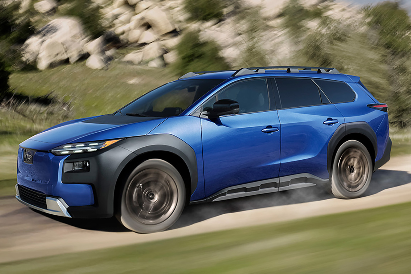 De excentrieke tegenhanger van de Subaru Solterra is omgebouwd tot een nog excentrieker verhoogde stationwagen met 375 pk. Dankzij een 74,7 kWh-accu is een actieradius van 449 km (279 mijl) mogelijk, terwijl het opladen 150 kW kan bereiken.
