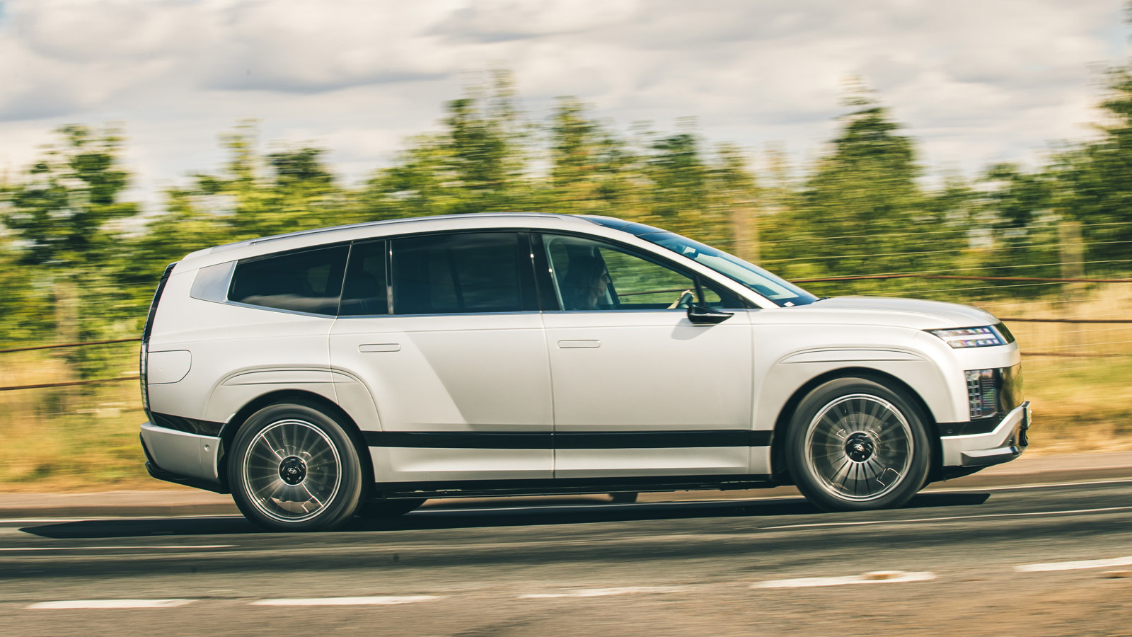 Outros detalhes intricados incluem os padrões ocultos atrás da «grelha», as rodas de 21 polegadas que parecem ter saído de um Alpina dos anos 70 e a forma como a traseira se assemelha a um Volvo V70 Mk2 que viajou no tempo. O Ioniq 9 consegue criar um estilo único numa era dominada por formas elétricas sem graça. Embora seja claramente um SUV, o seu perfil lateral e traseira incorporam elementos distintos de um MPV e de um carro familiar.
